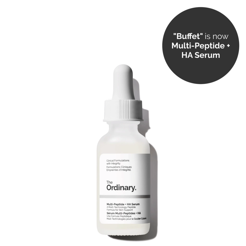 Multi-Peptide + HA Serum (anteriormente conocido como "Buffet") es una fórmula universal que combina una amplia gama de tecnologías para mejorar la suavidad de la piel y combatir múltiples signos de envejecimiento a la vez. Al utilizar cuatro tecnologías de péptidos bien estudiadas, aminoácidos que no dañan la piel y múltiples complejos de ácido hialurónico, ayuda a mejorar significativamente la apariencia de las patas de gallo, además de mejorar la sensación de elasticidad y firmeza de la piel.