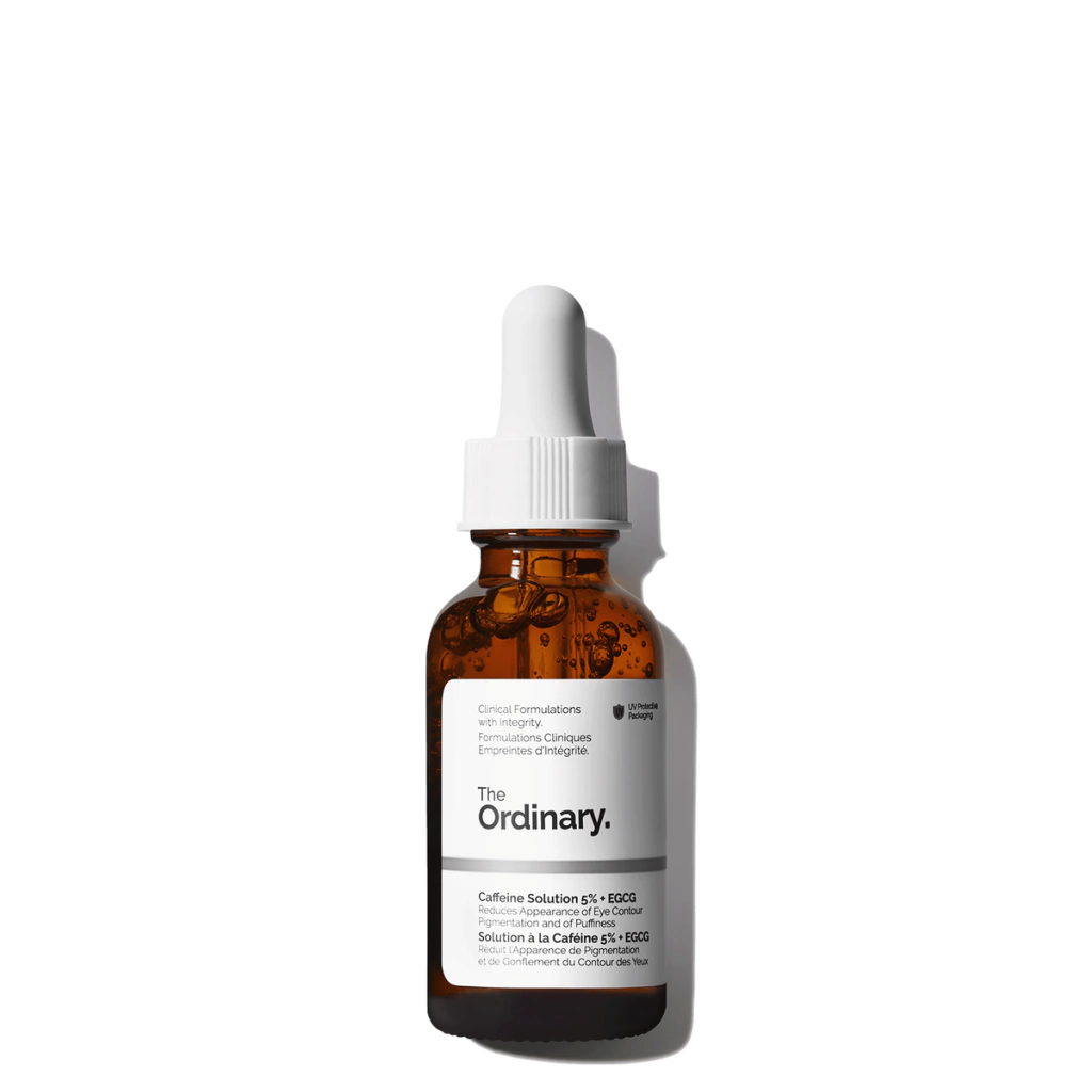 Caffeine Solution 5% + EGCG es un suero a base de agua que reduce la apariencia de bolsas y ojeras en el contorno de los ojos. La fórmula funciona combinando una alta concentración de cafeína con un glucósido de gallatilo de epigalocatequina altamente purificado (EGCG).