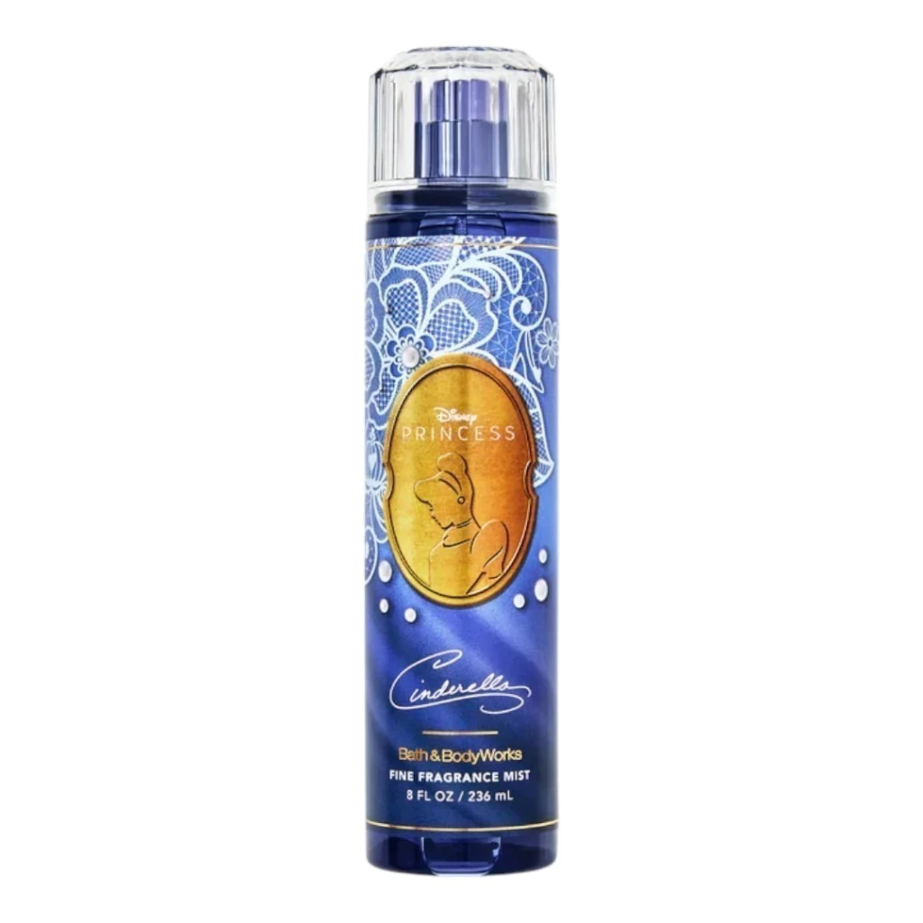 El body mist de 236 ml de Bath & Body Works, inspirado en la princesa Cenicienta , presenta una fragancia con notas de pétalos de gardenia, almizcle encantador y ámbar azul zafiro.