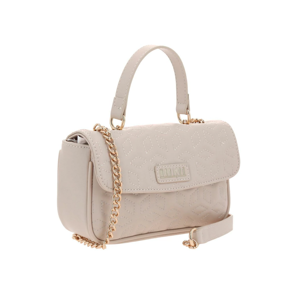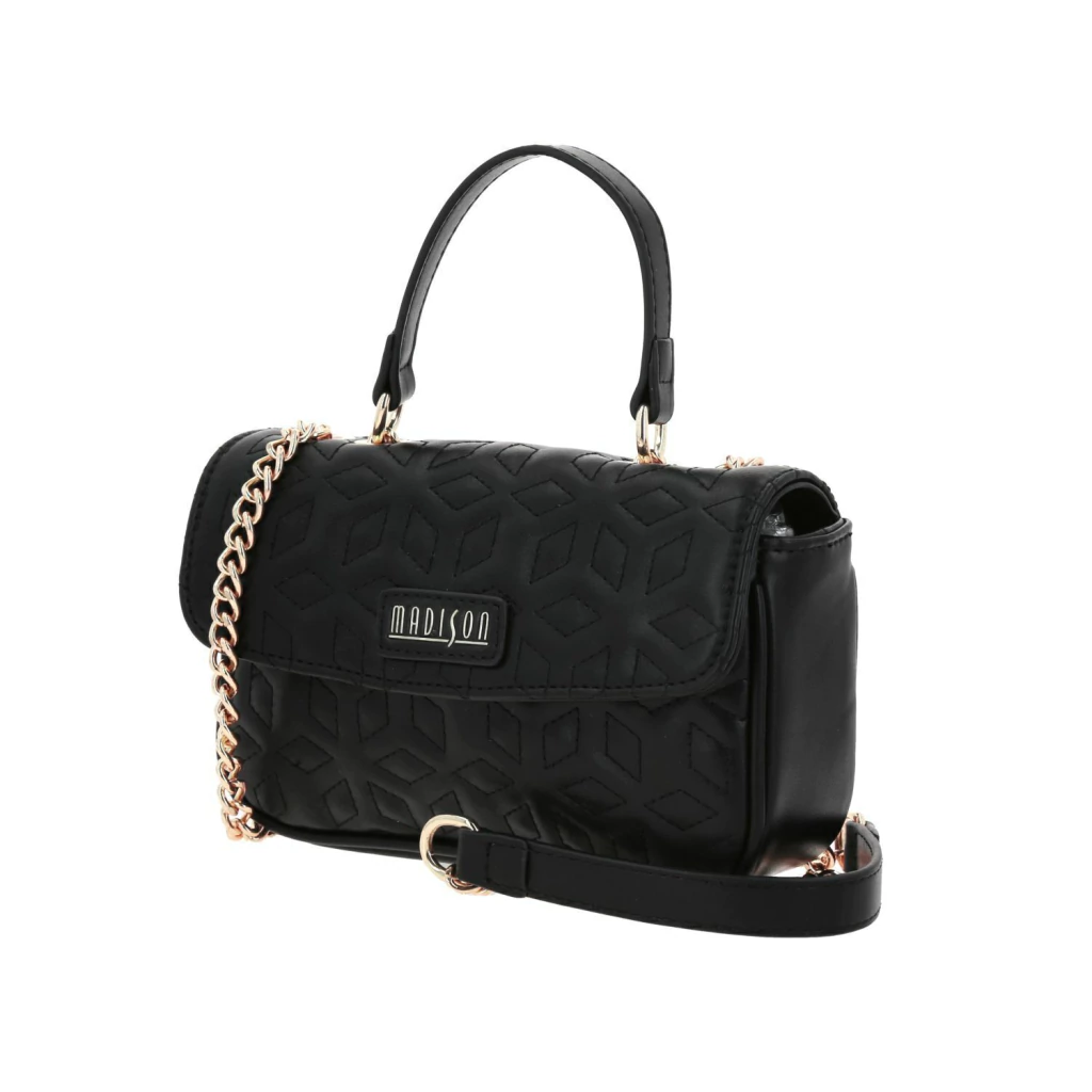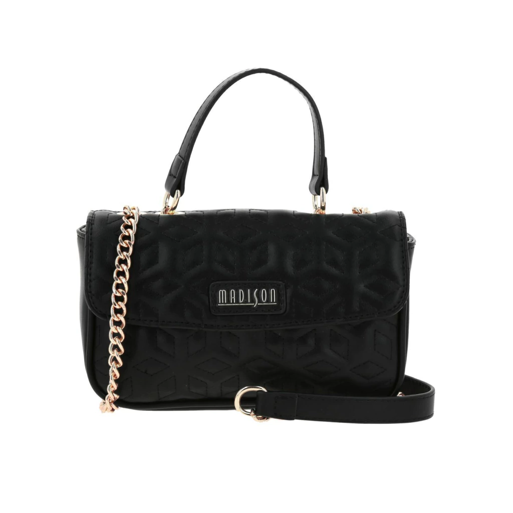 Con un diseño capitonado y elaborado en simil de piel 100%, este bolso es tan resistente como sofisticado. Sus medidas compactas, de 23 cm de largo, 15 cm de alto y 6 cm de ancho, lo hacen ideal para llevar lo esencial sin sacrificar el glamour.