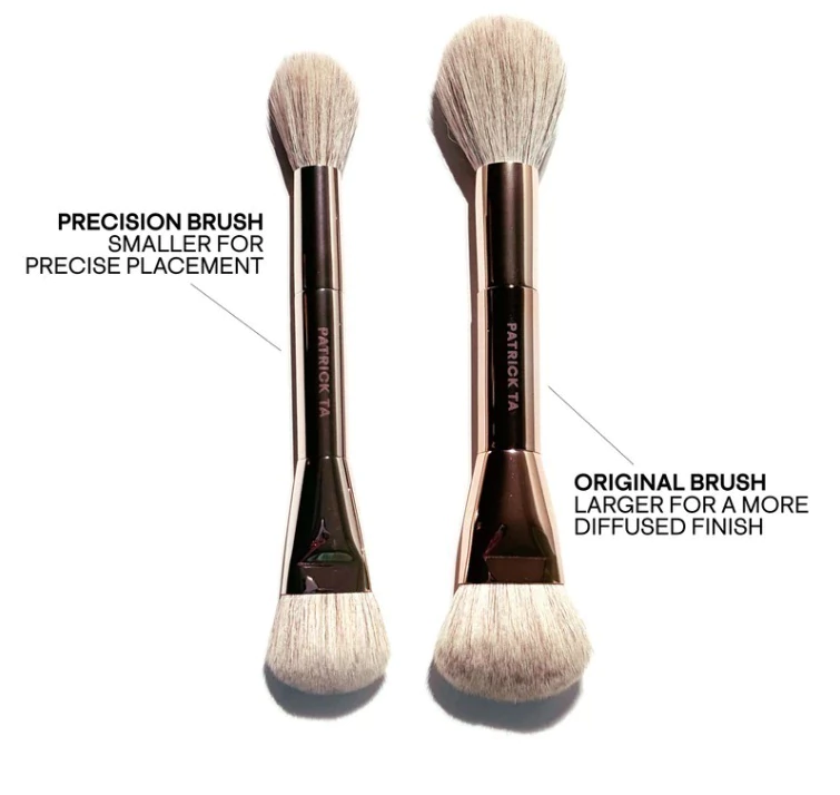 La doble punta permite una aplicación versátil: utiliza una punta para rubor en crema y la otra para polvos, logrando un acabado profesional y sofisticado. Ideal para quienes buscan un maquillaje de alta calidad y un resultado luminoso.