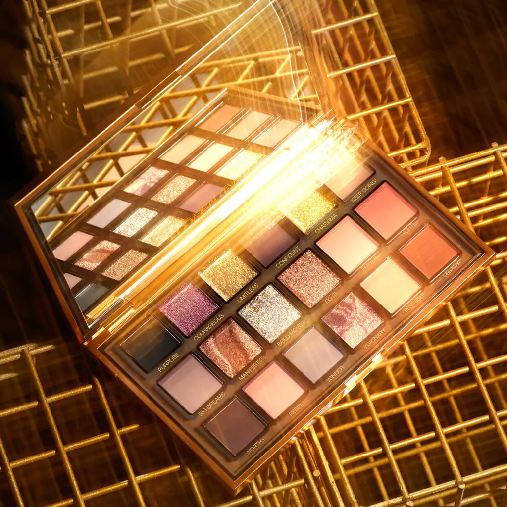 ¡La paleta definitiva para todos los días! Sea dueño de su poder con esta lujosa línea de dorados, cobrizos, marrones y neutros suaves como la mantequilla en una variedad de texturas que incluyen mates intensamente pigmentados, híbridos cremosos con delineador en gel, metálicos cromados laminados Y un brillo ostentoso de aspecto húmedo.