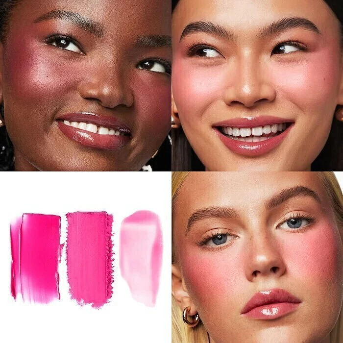 Dúo de Rubor Double-Take en She’s a Barbie Doll: Este dúo combina un rubor en crema y polvo en un vibrante rosa fucsia, ideal para resaltar tus mejillas. Aplica la combinación con nuestra brocha de doble punta para un acabado radiante y natural. ¡Es el secreto para lograr ese brillo de alfombra roja que tanto deseas!